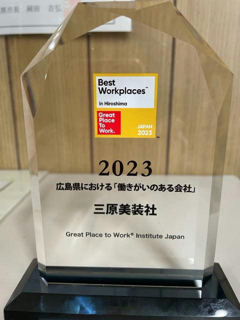 昨年、弊社はGPTWジャパン調査による「働きがいのある会社」に認定されました。そしてこの度一部の県ではありますが県内の認定企業から優秀企業を選出しており、2023年版広島県「働きがいのある会社」優秀企業5社に選出されました。