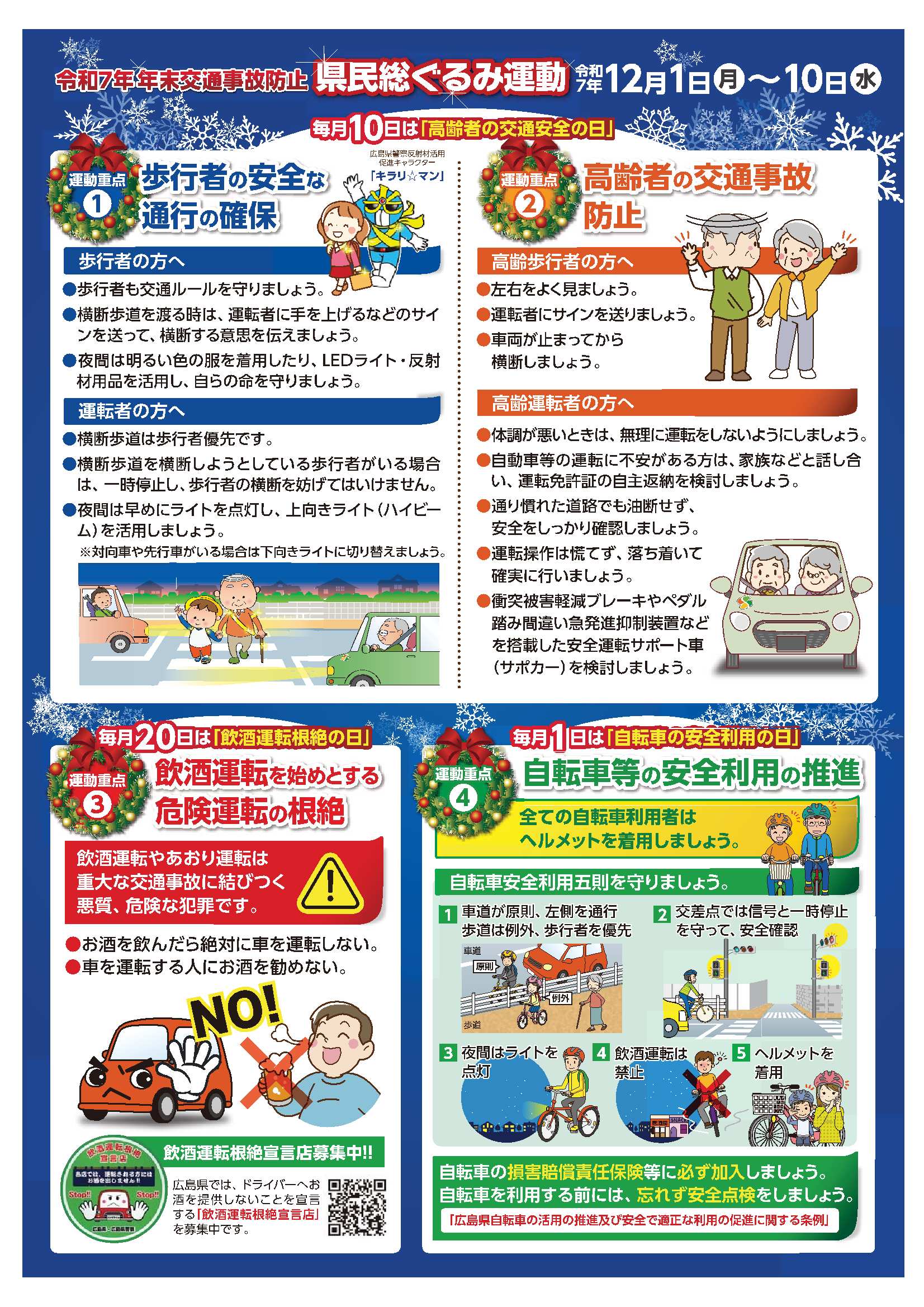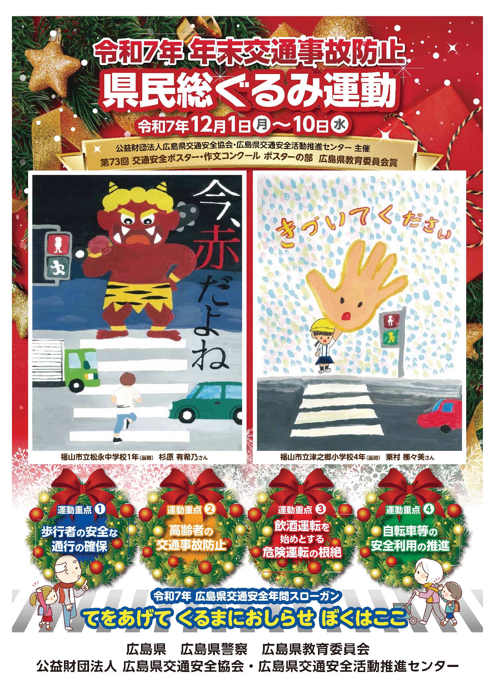 広島県の交通安全運動「なくそう交通事故・アンダー75作戦」の目標であった県内年間交通死亡事故者数75人以下を達成したことから新たな目標を交通死亡者数60人以下に定め「なくそう交通事故・アンダー60作戦」を開始しました。
